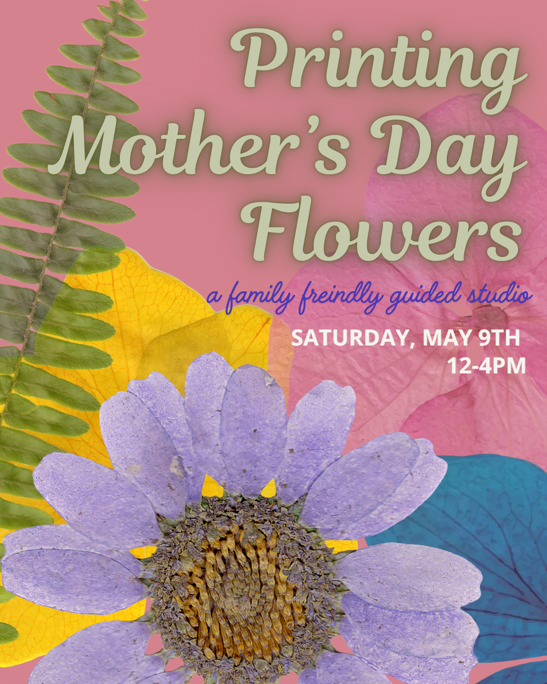 Workshop Title: Printing Mother’s Day Flowers: A Family Friendly Guided Open Studio