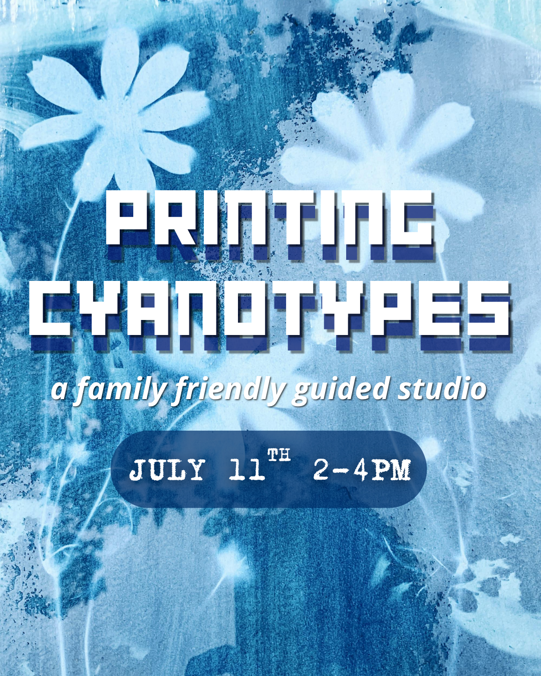 Workshop Description: Did you know you can use the sun to make prints? This PAY-WHAT-YOU-CAN AND OPEN TO THE COMMUNITY guided studio is for artists from any discipline, as well as anyone who wants to explore the world of printmaking (kids too!). Join us for a day of outdoor printmaking. We will have pre-coated papers as well as stencils, fabric, textures, and even photo-negatives for you to choose from to make unique and beautiful prints. Participants will also have access to additional stations, such as make-your-own stamps, collaging, and wash-out techniques, where they can play with customizing their prints even further. Explore cyanotype printmaking methods, make new friends, and take home unique handmade prints!