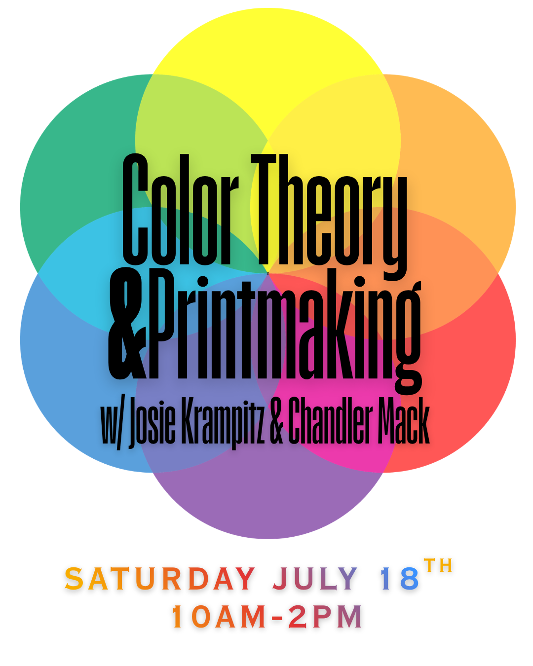Workshop Description: Color theory is a very important skill for all artists to have, but especially for printmakers. Join Program Manager Chandler Mack and Teaching Artist Josie Krampitz for this 1 day workshop in which we will be exploring color theory as it applies to printmaking. Learn how to mix inks, layer transparent colors, and take your prints from good to great. This workshop will use pre-made designs that you can print using the custom colors you create. Students will walk away from this workshop with a new understanding of color theory and confidence they need to mix inks and create complex colors.